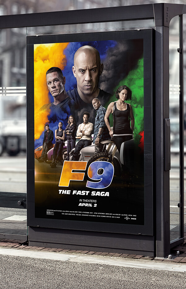 LACED Agency created spec concepts for the F9 Movie Franchise – designed to promote the theatrical release of the movie (April 2021) by utilizing various online and offline Ad Campaign Creative. LACED Agency’s design concepts for F9 included; poster art, billboard ads, outdoor advertising creative (bus stops), indoor advertising creative (metro locations), movie poster bus wrappers, digital display ad creative, and social media advertising that included fresh creative concepts for Instagram Stories and Reels.